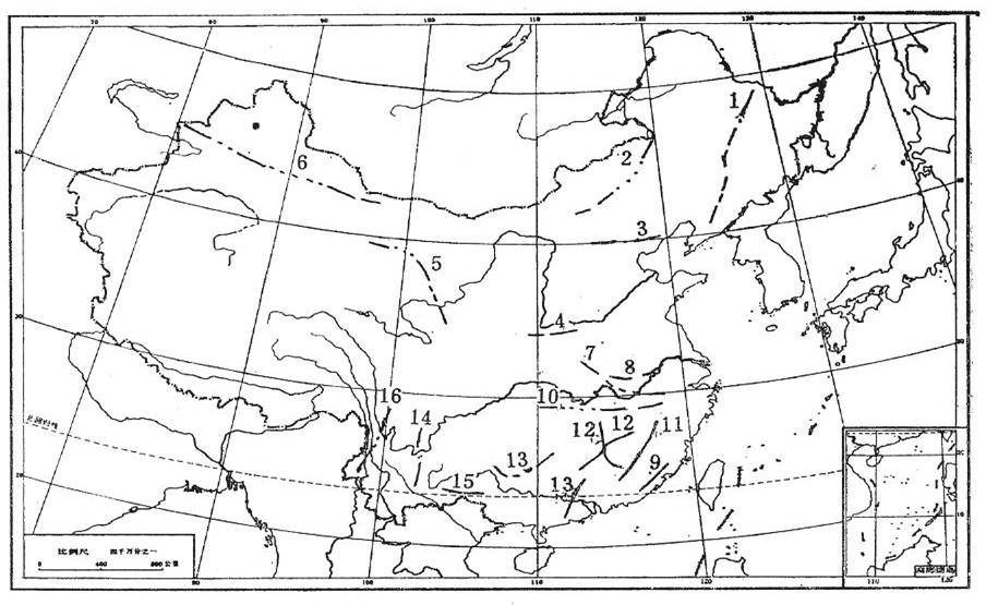 1-Jinlin-heilongjiang(Jinhei)metallogenic belt 2-Inner Mongolia-Dahinganling metallogenic belt 3-Yangshanmetallogenic belt 4-East Qinling metallogenic belt 5-Qiliao-west Qinling metallogenic belt 6-Tianshan-beishan metallogenic belt 7-Wudang-Huaiyang upwarping metallogenic belt 8-Lower Yangze Platform folded metallogenic belt 9-Souteast coastal metalloongenic belt 10-Jiagnan platform upwarping metallogenic belt 11-Wuyishan Caledonian upwarping metallogenic belt 12-Hunan-Jiangxi Guangdong(xiang-ganyue)Caledonian upwarping metallogenic belt 13-hunan guangxi Guangdong (xiang-ganyue)Hercynian-Indo –Sinian downwarping metallogenic belt 14-Kangdian axis metallogenic belt 15-Yunnan-Guangxi(Dian gui)platform folded metallogenic belt 16-Sanjiang tin-tungsten metallogenic belt.