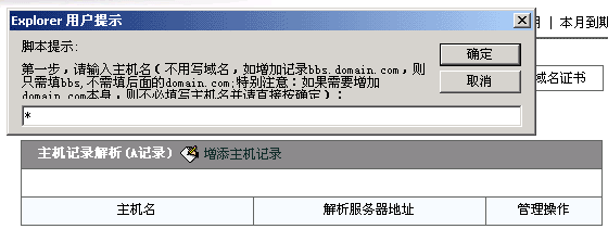 2>點擊"增添主機記錄",然后在彈出的框內(nèi)輸入"*",注意,不能輸入"*.hzhost.com"。如下圖所示: