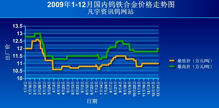 2009年1-12月份國內(nèi)鎢鐵合金價格走勢圖