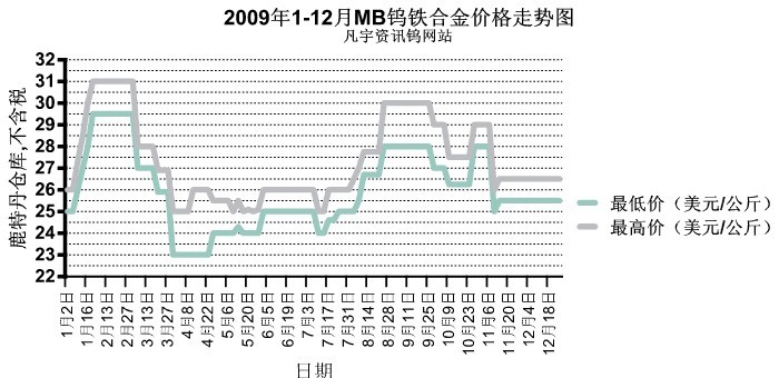 2009年1-12月份MB國(guó)際鎢鐵合金價(jià)格走勢(shì)圖