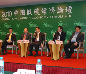 由中國(guó)高新技術(shù)產(chǎn)業(yè)開(kāi)發(fā)區(qū)協(xié)會(huì)、金融時(shí)報(bào)、中國(guó)環(huán)境報(bào)、國(guó)際分布式能源聯(lián)盟、臺(tái)灣碳排放交易推廣協(xié)會(huì)、FT中文網(wǎng)、華爾街日?qǐng)?bào)、彭博新聞社、美通社(亞 洲)共同舉辦的“2010中國(guó)低碳經(jīng)濟(jì)論壇”今日繼續(xù)在北京釣魚(yú)臺(tái)國(guó)賓館舉行。本次盛會(huì)金融界網(wǎng)站全程為您直播。圖為“低碳城市,讓生活更美好”——對(duì)話 低碳城市環(huán)節(jié)現(xiàn)場(chǎng)。