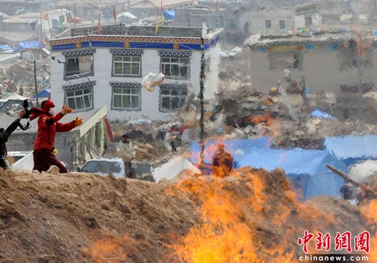 青海玉樹地震遇難者遺體被火葬