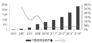 據(jù)悉,日本于1983年首先在世界上推出第一臺變頻空調(diào),至2009年變頻空調(diào)已占日本市場的99%以上,而在歐美等發(fā)達國家的普及率也在 80%以上。而節(jié)能空調(diào)對高性能釹鐵硼永磁材料的防腐蝕性能要求極高,如全球領(lǐng)先的空調(diào)生產(chǎn)企業(yè)――日本大金要求對高性能釹鐵硼永磁材料采用國際領(lǐng)先的真空鍍鋁技術(shù)。當(dāng)前,我國空調(diào)市場上80%的空調(diào)均屬于2級以下的定頻空調(diào),我們預(yù)計我國變頻空調(diào)的產(chǎn)量增速將快于整體的空調(diào)產(chǎn)量增速,未來將整體保持年復(fù)合增長率30%以上的速度。