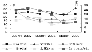 各公司釹鐵硼業(yè)務(wù)的毛利率水平