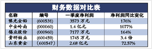 其中,焦作萬方(000612,股吧)一季度凈利潤(rùn)漲6.9倍,達(dá)到1.8億元;貴研鉑業(yè)(600459,股吧)一季度凈利潤(rùn)同比增長(zhǎng)3.4倍,達(dá)到1745萬元。