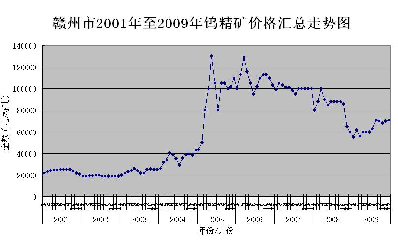 2001年至2009年江西贛州鎢精礦價格走勢圖