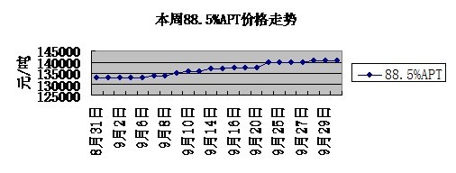 ,贛州市鎢業(yè)協(xié)會公布9月份指導價格:贛州市鎢業(yè)協(xié)會20109鎢精礦、APT及中顆粒鎢粉的指導價分別為8.6萬元/標噸、13.5萬元/噸、 21.321.6萬元/噸,而8月份的指導價格分別為8.4萬元/標噸、13-13.2萬元/噸、20.5-20.7萬元/噸。