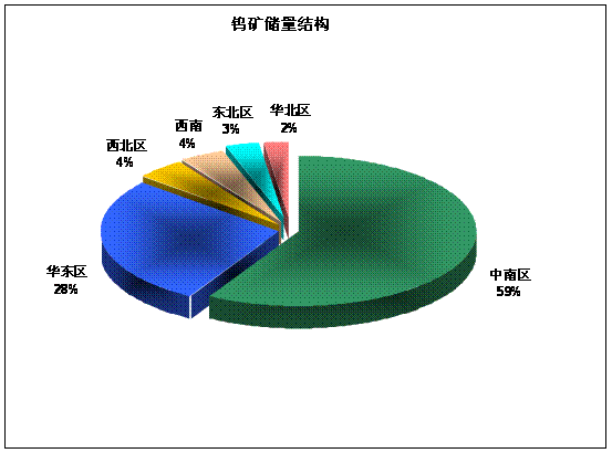 鎢礦是我國的優(yōu)勢礦產(chǎn)資源�,F(xiàn)已發(fā)現(xiàn)并探明有儲量的礦區(qū)252處,累計探明儲量(WO3,下同)637.5萬噸,其中A+B+C級儲量232萬噸,占36.4%。我國鎢礦保有儲量為529.08萬噸,其中A+B+C級儲量228.11萬噸,占43.1%。中國鎢礦資源豐富,著稱世界,其儲量在世界排位,以中國表內(nèi)A+B+C級儲量同世界儲量基礎(chǔ)相比居世界第1位。第2位加拿大(儲量基礎(chǔ)49.3萬噸)、第3位俄羅斯(儲量基礎(chǔ)35.5萬噸)。中國鎢礦不僅儲量居世界第一,而且產(chǎn)量和出口量長期以來也居世界第一,因而被稱譽為“世界三個第一”。從全國大行政區(qū)分布來看,依次:中南區(qū)占全國鎢儲量的58.2%,居首位,其次是華東區(qū)占28%、西北區(qū)占4.3%、西南占4.1%、東北區(qū)占3.2%、華北區(qū)占2.2%。