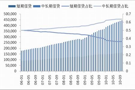 伴隨著國內(nèi)通貨膨脹的加劇,中央政政治局討論通過了2011年的國家財政貨幣政策,明年將實施積極的財政政策和穩(wěn)健的貨幣政策,從表面上看,明年的信貸政策將逐步趨緊,但我們觀察一下09年4萬億推出以來我國實施的整個財政與貨幣投向,我們發(fā)現(xiàn)其中長期信貸占比明顯偏大,且新建項目明顯占據(jù)主主 流。從資金來源看雖然預算與貸款資金在今年以來有所下降,但伴隨著明年積極的財政政策,在固定資產(chǎn)投資尤其保障房項目建設上,預算資金無疑將再度占據(jù)主 流,預算資金對于固定資產(chǎn)投資的貢獻有望主導明年的固定資產(chǎn)投資增速。而從去年以來固定資產(chǎn)投資的建設項目性質(zhì)來看,新建比例明顯提高,在09年新建比例 為61.3%,到今年10月其比例已經(jīng)提高至63.5%,新建項目比例的提高無疑會大大增加其信貸需求以及延長信貸時間,實際上從中國貸款期限上看,目前 中長期信貸占比仍然在不斷提升,再加上地方政府融資平臺的存在,都給我國銀行體系帶來了巨大的系統(tǒng)性風險。