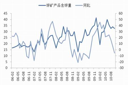 圖為中國鋅礦產(chǎn)品含鋅量走勢