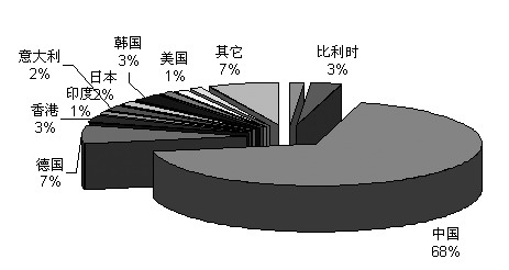 與廢銅的出口相比,廢銅的進口十分集中:中國、德國、日本、韓國和比利時等國的廢銅進口量就占了全球廢銅進口總量的80%以上。作為全球制造業(yè)的重 心,2008年中國的廢銅進口量達到557.7萬噸,占全球廢銅進口總量的68%,是當之無愧的全球第一。德國的廢銅進口量僅次于中國,2008年的進口 量為56.3萬噸,日本、韓國和比利時等國2008年的廢銅進口量則在20萬噸左右。