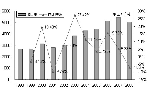 長期來看,全球的廢銅出口量一直處于增長之中,這與 廢銅回收量的增長是一致的。除了全球宏觀經(jīng)濟衰退導致廢銅出口量出現(xiàn)下降之外,在其余年份廢銅的出口量均實現(xiàn)了較大幅度的增長,2006—2008年期 間,全球廢銅的年出口量均超過了500萬噸(實物量)。從統(tǒng)計來源來看,由于出口廢銅的均是工業(yè)發(fā)達國家,因此我們有充足的理由相信,這些數(shù)量龐大的廢銅 均是高品位廢銅。