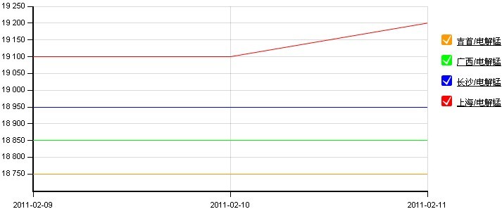 圖1:全國主要地區(qū)電解錳價格走勢圖(2011.2.7-2011.2.11)