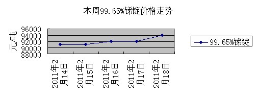 行情回顧及預(yù)測:本周銻價(jià)繼續(xù)維持前期漲勢,隨著市場參與商陸續(xù)回歸市場,供應(yīng)商 提價(jià)積極,現(xiàn)貨成交量在不斷增多,市場成交價(jià)也在不斷上揚(yáng)。據(jù)生產(chǎn)廠家反映,目前他們多數(shù)在執(zhí)行去年年底簽訂的長單,雖年后市場需求不斷回暖,但卻苦于無 現(xiàn)貨供市場流通只能坐立觀望。當(dāng)前一些廠家已經(jīng)開工,但待現(xiàn)貨產(chǎn)出尚需時(shí)日,銻現(xiàn)貨不足的局面短期內(nèi)仍然無法緩解,加上銻精礦等原料成本持高,預(yù)計(jì)短期內(nèi)銻價(jià)仍將小幅見漲。