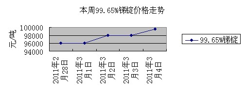 行情回顧及預測:本周銻價繼續(xù)持漲,2#銻錠價格順利突破100000元/噸,買方對此都感到很驚愕,市場交易緩慢,三氧化二銻也隨著銻錠價格繼續(xù)跟進,但需求較銻錠有些力 不從心。面對日益高漲的銻價,市場形成兩對截然相反的觀點,一方認為后方市場伴隨一定風險,一方面生產(chǎn)商庫存在不斷增加,另一方面一些供應商未來可能會因 資金周轉問題選擇拋售套現(xiàn);另一方則較為樂觀,他們認為買賣雙方存在一定制衡力量,雖然銻廠家?guī)齑嬖诓粩嘣龆�,但同時一些終端用戶手中的庫存量也十分有 限,后期他們將不得不返回市場補貨。