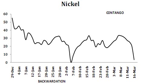 圖:倫鎳現(xiàn)貨對(duì)三月期貨貼水幅度急速下降
