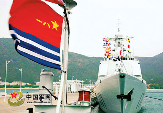 我國(guó)艦艉懸掛的海軍旗。特約記者 李 唐攝