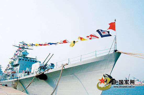 資料圖:我國(guó)海軍懸掛滿旗的艦艇。
