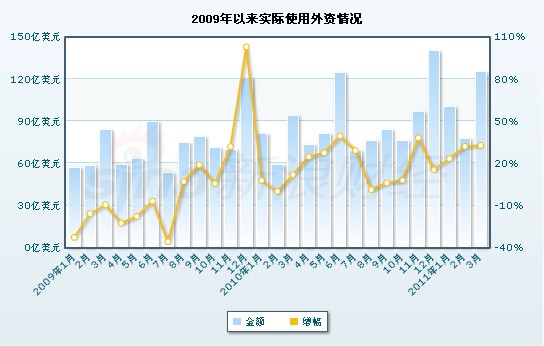 新浪財(cái)經(jīng)訊 據(jù)商務(wù)部統(tǒng)計(jì),全國(guó)1-3月,實(shí)際使用外資金額303.4億美元,同比增長(zhǎng)29.4%。3月當(dāng)月,實(shí)際使用外資125.2億美元,同比增長(zhǎng)32.9%。