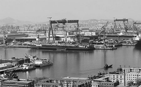 1985年,一艘名為“里加”號的前蘇聯(lián)航空母艦,在烏克蘭尼古拉耶夫黑海造船廠開建。那時,誰也不會將這艘航母與中國聯(lián)系起來。1990年 “里加”號航母被更名為“瓦良格”號。1993年,烏克蘭和俄羅斯簽訂黑海艦隊分割協(xié)議,“瓦良格”號劃歸烏克蘭。1995年,完成68%建造工程的“瓦 良格”號正式退出俄海軍編制。1999年,在開建14年、下水11年、停建8年后,銹跡斑駁的“瓦良格”號開始了前往中國的艱難之旅。
