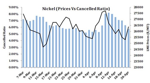 金川集團(tuán)鎳板出廠(chǎng)價(jià)緊隨市場(chǎng)變化,4月19日下調(diào)4000元/噸至193000元/噸。其后,21日,22日,兩次上調(diào)出廠(chǎng)價(jià)4000元/噸至197000元/噸。周內(nèi),市場(chǎng)現(xiàn)貨鎳價(jià)累計(jì)上漲約1000元/噸,市場(chǎng)成交較上周有所好轉(zhuǎn)。