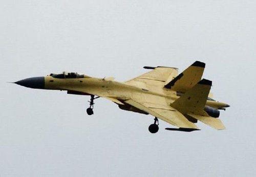資料圖:網絡流傳的正在試飛的中國殲15型艦載機。
