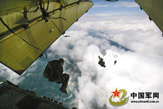 資料圖:汶川救災(zāi)期間,空降兵部隊(duì)在災(zāi)區(qū)進(jìn)行傘降。劉應(yīng)華攝