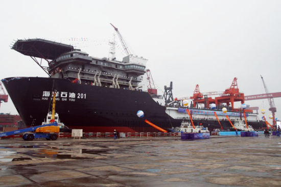 新華網(wǎng)上海5月24日電 (記者王蔚 何欣榮 賈遠(yuǎn)琨) 24日,由熔盛重工建造、同時(shí)具備3000米級(jí)深水鋪管能力和4000噸級(jí)重型起重能力的“海洋石油201”深水鋪管起重船,正式命名并即將試航。這是中 國(guó)為開(kāi)發(fā)深海油氣而打造的“5型6船”聯(lián)合艦隊(duì)中的一個(gè)“戰(zhàn)略利器”。業(yè)內(nèi)人士認(rèn)為,它的建成標(biāo)志著中國(guó)已躋身世界深海油氣開(kāi)發(fā)的前列。