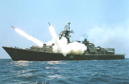 資料圖:印度海軍德里級導(dǎo)彈驅(qū)逐艦發(fā)射導(dǎo)彈