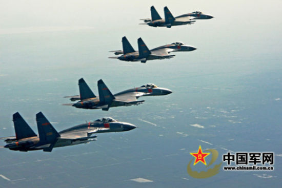 殲11梯隊(duì)進(jìn)行編隊(duì)訓(xùn)練 資料圖