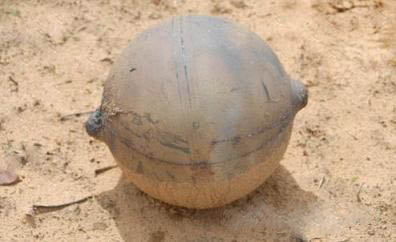墜落納米比亞一偏遠(yuǎn)地區(qū)的神秘金屬球,落地時(shí)砸出一個(gè)深12英寸(約合30厘米)的大坑這個(gè)怪球可能是類似照片展示的衛(wèi)星上的肼罐神秘金屬球發(fā)現(xiàn)地點(diǎn),納米比亞北部的旱地