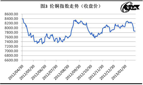 促使近期鎢市場(chǎng)回暖原因更多是市場(chǎng)心態(tài)層面的,有效需求的好轉(zhuǎn)還未明顯體現(xiàn);供求方面,產(chǎn)業(yè)鏈后端庫(kù)存較少,而鎢礦和APT環(huán)節(jié)庫(kù)存較充裕;全球經(jīng)濟(jì)環(huán)境還在底部徘徊,存在一些不確定因素,如近期美國(guó)可能提前退出量化寬松貨幣政策的會(huì)議就導(dǎo)致大宗期貨持續(xù)下跌,見圖3;2013年1月,國(guó)產(chǎn)汽車生產(chǎn)196.45萬輛,環(huán)比增長(zhǎng)10.06%,同比增長(zhǎng)51.17%;銷售203.45萬輛,環(huán)比增長(zhǎng)12.41%,同比增長(zhǎng)46.38%;2013年1月,進(jìn)出口總額同比分別增長(zhǎng)28.8%和25.0%,環(huán)比分別下降5%左右;2013年1月,中國(guó)PMI值為50.4%,持續(xù)4個(gè)月在50%以上運(yùn)行,但環(huán)比下降0.2個(gè)百分點(diǎn),見圖4。綜上因素,影響鎢市場(chǎng)因素存在不確定性,有消極的,也有積極的�?傮w看,需求向好,價(jià)格呈震蕩上行趨勢(shì)。……更多新聞資訊、價(jià)格與市場(chǎng)