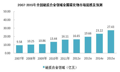 總體看來,在我國新材料行業(yè)需求不斷增長(zhǎng)的大背景下,我國為降低鎢資源的浪費(fèi),提高高端硬質(zhì)合金的國產(chǎn)化率,將繼續(xù)加大、高端硬質(zhì)合金刀具如數(shù)控刀片、金屬陶瓷刀具的投資開發(fā)力度,這將直接帶動(dòng)稀有金屬碳化物行業(yè)的發(fā)展,預(yù)計(jì)未來幾年,我國稀有金屬碳化物市場(chǎng)規(guī)模將保持15%左右的復(fù)合增長(zhǎng)率,預(yù)計(jì)2015年將達(dá)到30.62億元,與此同時(shí),全球稀有金屬碳化物市場(chǎng)規(guī)模在2015年將達(dá)到19.65億美元。因此,稀有金屬碳化物行業(yè)發(fā)展?jié)摿薮蟆?/SPAN>……更多新聞資訊、價(jià)格與市場(chǎng)