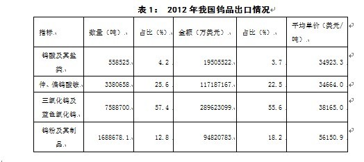 2、2012年鎢出口市場(chǎng)情況