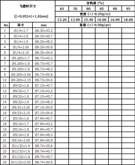 我們可以提供不同尺寸,配比的鎢合金飛鏢桿。