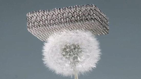 這種金屬材料被稱為“迷你網(wǎng)格”(microlattice),非常輕盈,甚至能放在一朵蒲公英之上。它還具有很高的強(qiáng)度,波音公司宣稱,如果把雞蛋用這種材料包裹起來,即使從25層樓的高度掉下來也不會摔壞。
