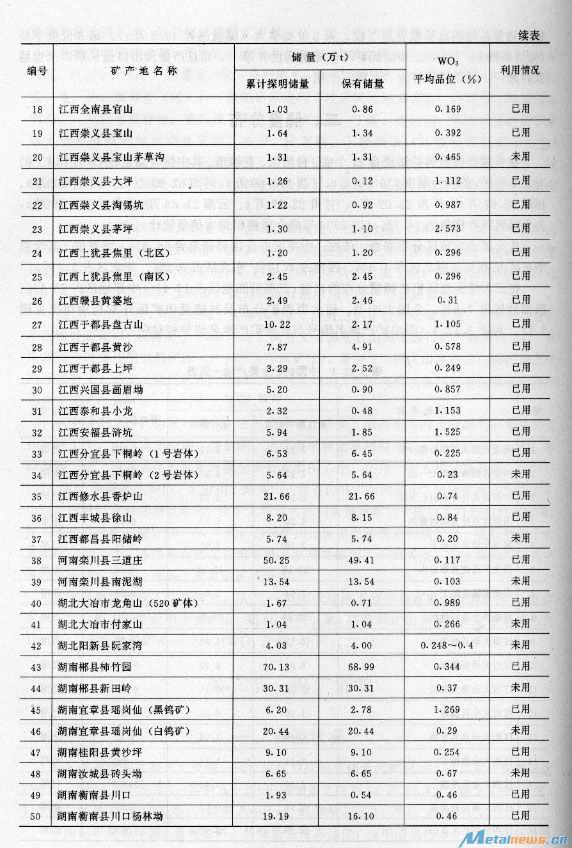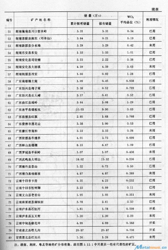 表3.12.4中國鎢礦主要產(chǎn)地一覽表