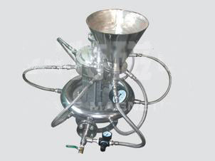 壓縮空氣通過加料噴射器,將粉碎原料帶入粉碎室,壓縮空氣通過均勻分布在粉碎室周圍的數(shù)個粉碎噴嘴,噴射超音速氣流,高速氣體在粉碎室內(nèi)形成強烈的旋流,使通過加料噴射器進入粉碎室的原料顆粒之間互相碰撞、摩擦以達到超微粉碎的目的。