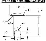 Semi-tubular rivets (also known as tubular rivets) are similar to solid rivets, except they have a partial hole (opposite the head) at the tip. The purpose of this hole is to reduce the amount of force needed for application by rolling the tubular portion outward.
