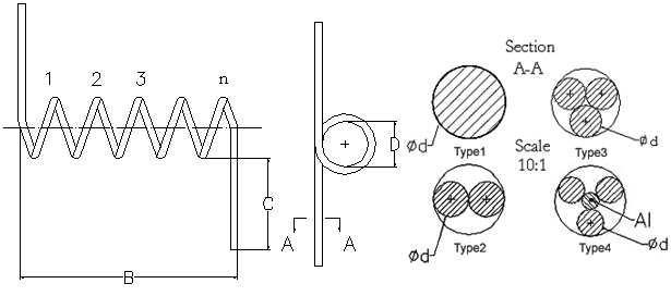 Specifications : Type : Single-stand or multiple-strands£¨2-3£© in different shapes £¨all the type may find at www.tungsten-heater.com.cn£© Material : Doped Tungsten Wire Properties : Good corrosion resistance, better high-temperature performance and long using life Applications: mirror industry, kinescope industry, vacuum plating, metal vaporization etc..