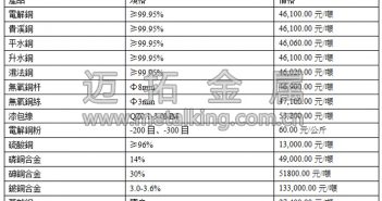 氧化鉬、七鉬酸銨、鉬鐵最新價格 764