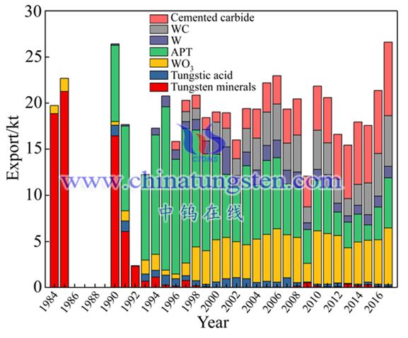 Statistics of China’s main tungsten products exports from 1984 to 2017