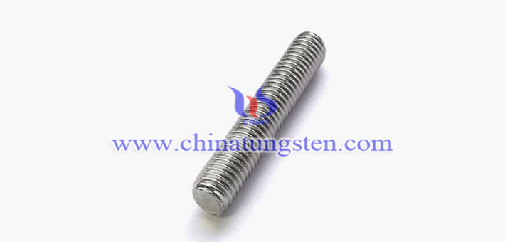 Tungsten alloy stud has a thread at both ends and no head. One end must be screwed into a part with an internal threaded hole, and the other end through a part with a through-hole. Then the nut is screwed to fasten the two parts together as a whole.