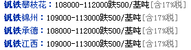 今日國內(nèi)釩鐵小幅下滑,上周鋼材采購乏力,價(jià)格偏低,對于一直疲軟的國內(nèi)市場而言幾乎可以說是雪上加霜,貿(mào)易商們見釩鐵一直弱勢盤整,部分貿(mào)易商已經(jīng)心態(tài)不穩(wěn),河北地區(qū)不帶票價(jià)格已經(jīng)低至 9.55 -9.6 萬, 9.55 萬為自提價(jià), 9.6 萬為送到價(jià)。