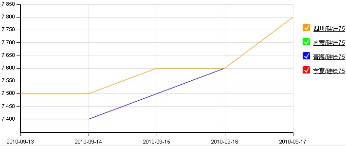 圖1:本周國(guó)內(nèi)主要地區(qū)72#硅鐵價(jià)格(元/噸)