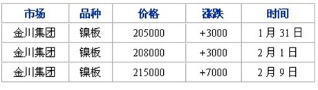 緊跟外盤走勢,自1月31日起,金川集團數(shù)次上調(diào)電解鎳出廠價,累計上調(diào)1.3萬元/噸至21.5萬元/噸。節(jié)后,持貨中間商大幅上調(diào)報價至21.7萬元/ 噸附近,無錫電子盤也大幅跳漲。現(xiàn)貨市場,一方面,供應(yīng)方調(diào)高叫價,另一方面需求方畏懼高價,貿(mào)易商補貨意愿低,本周三個交易日中,現(xiàn)貨鎳市交投清淡。
