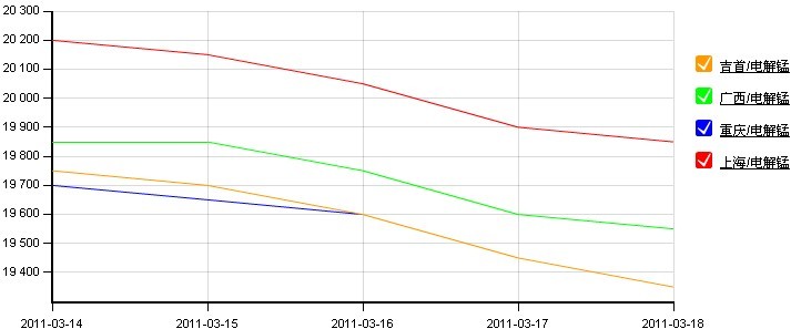 圖1:全國主要地區(qū)電解錳價格走勢圖(2011.3.14-2011.3.18)