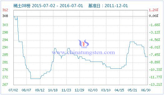 2016年7月1日稀土指數(shù)為283
